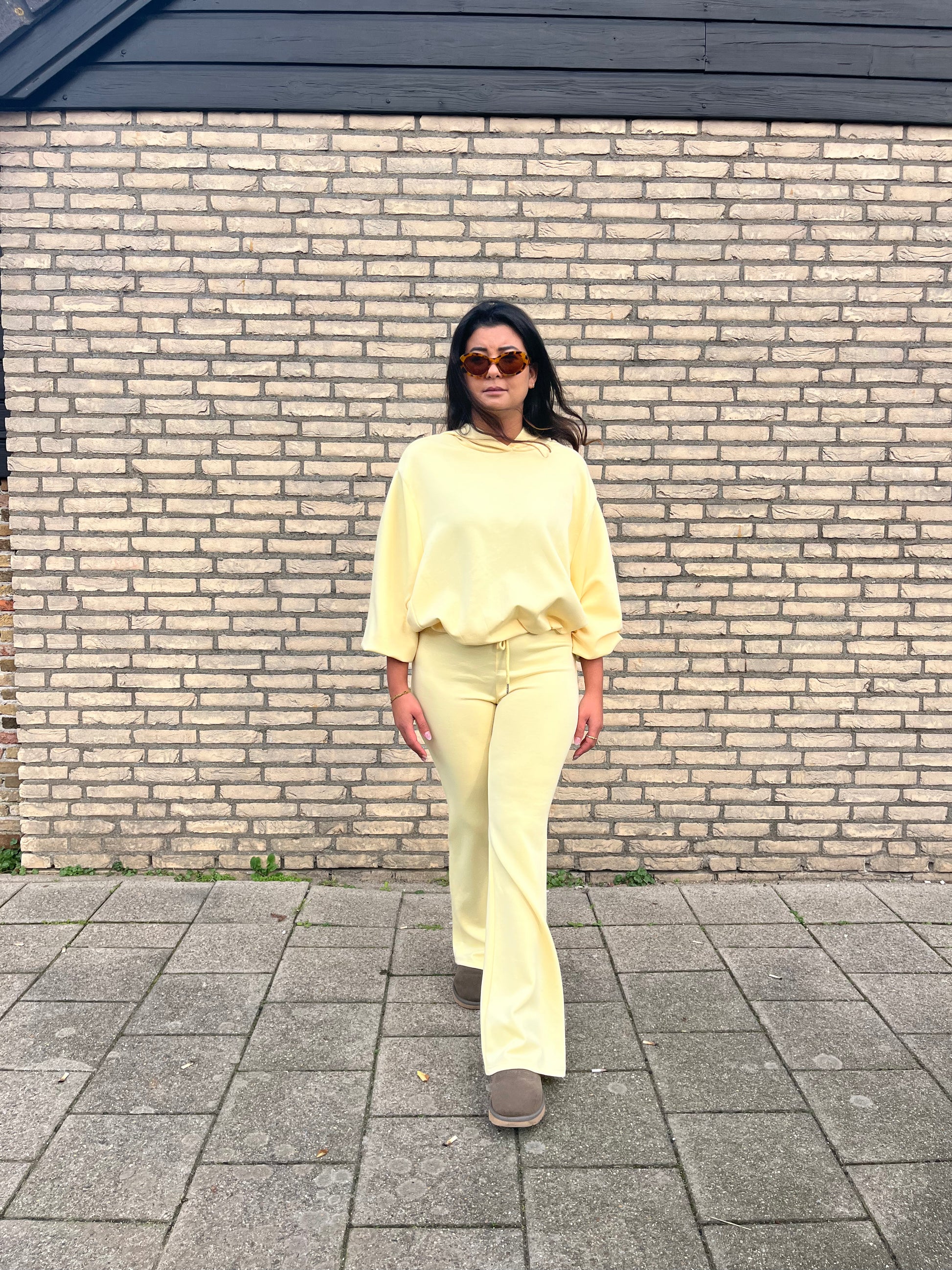 Comfy alert! De Quinn Comfy Set in het butter yellow is jouw nieuwe favoriete go-to outfit! Of je nu een relaxte dag thuis plant, met vrienden afspreekt of wat beweging nodig hebt – deze set speelt in op alle momenten.