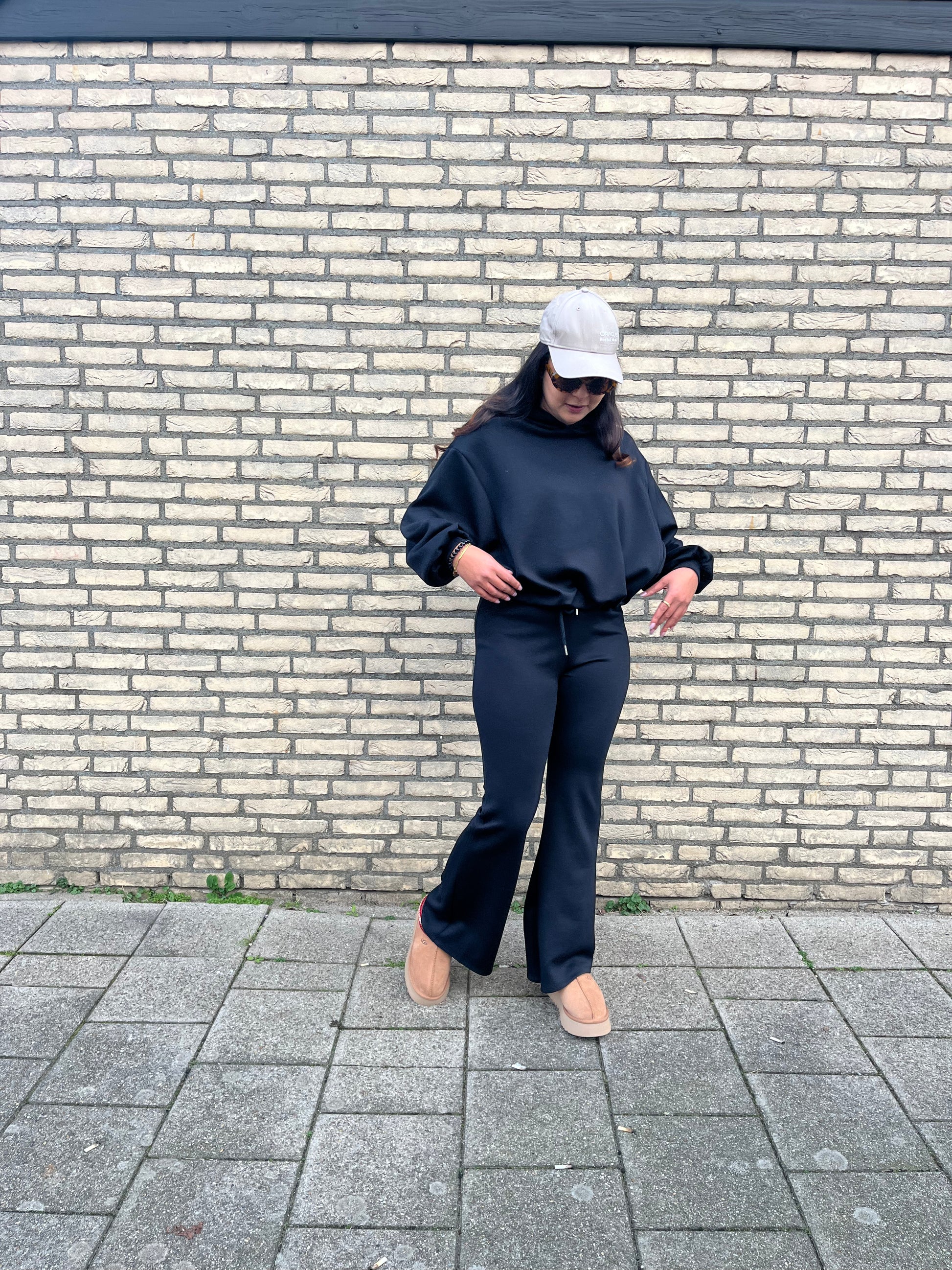 Comfy alert! De Quinn Comfy Set in de kleur zwart is jouw nieuwe favoriete go-to outfit! Of je nu een relaxte dag thuis plant, met vrienden afspreekt of wat beweging nodig hebt – deze set speelt in op alle momenten.