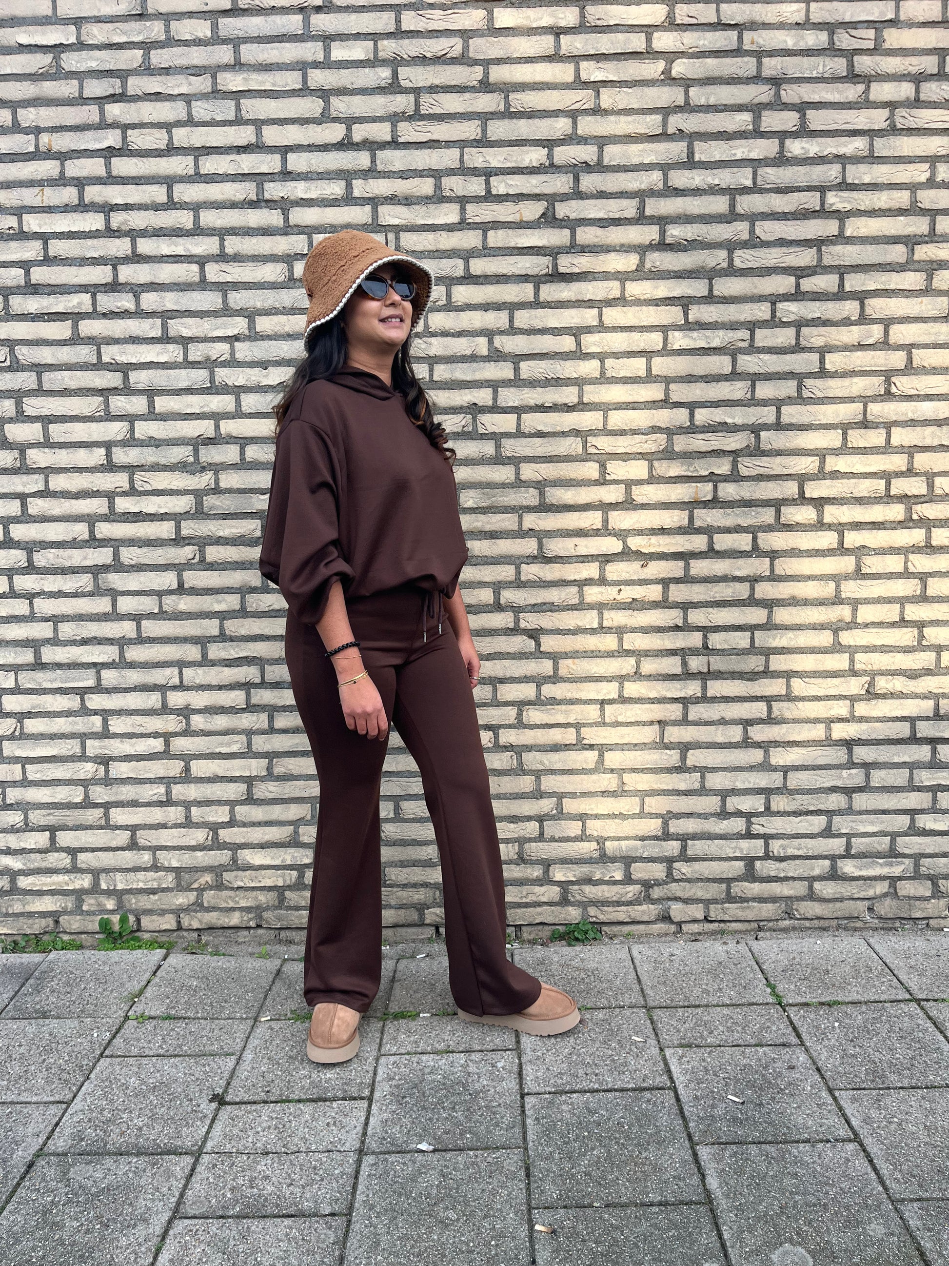 Comfy alert! De Quinn Comfy Set in de choco kleur is jouw nieuwe favoriete go-to outfit! Of je nu een relaxte dag thuis plant, met vrienden afspreekt of wat beweging nodig hebt – deze set speelt in op alle momenten.