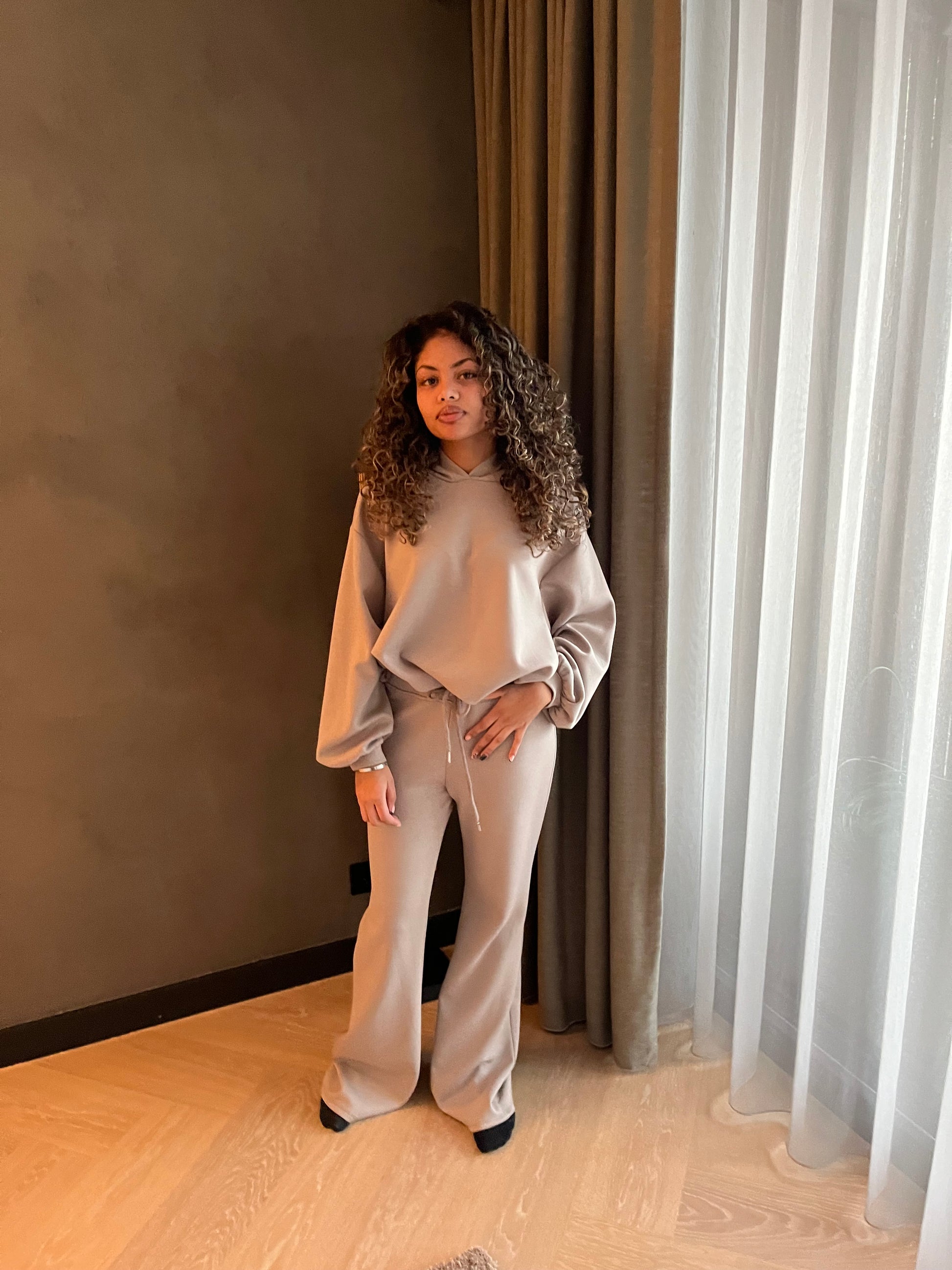 Comfy alert! De Quinn Comfy Set in de kleur taupe is jouw nieuwe favoriete go-to outfit! Of je nu een relaxte dag thuis plant, met vrienden afspreekt of wat beweging nodig hebt – deze set speelt in op alle momenten.