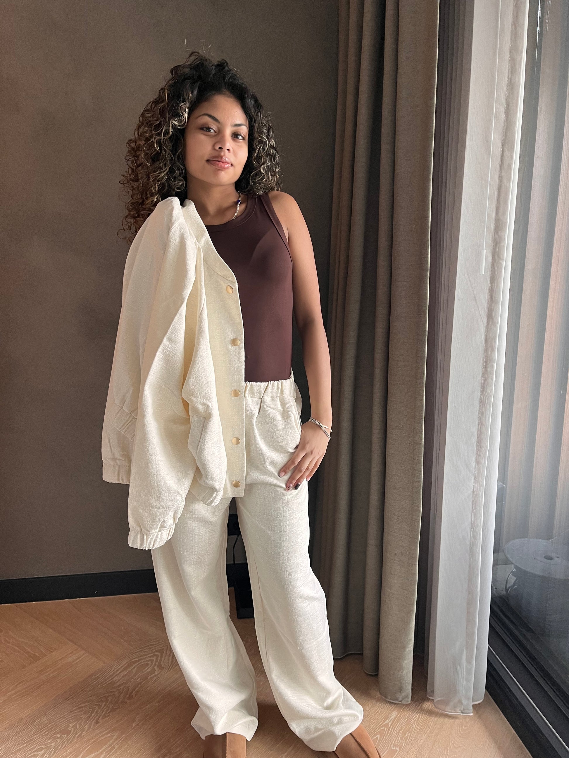 POWER IN NEUTRALS Deze mooie beige set is perfect voor de lente en de zomer! De set hebben wij gecombineerd met de 'Basic top brown'.